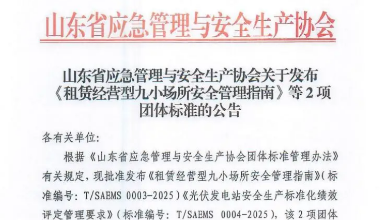• 青島城投集團牽頭發布省級團體標準填補九小場所安全管理空白